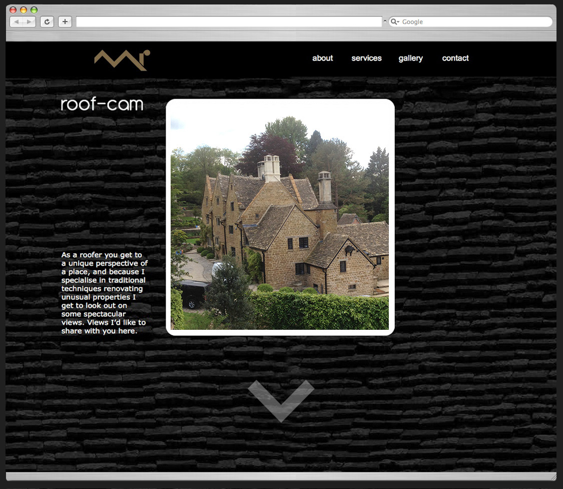 Mathew Rich specialises in high-end Cotswold stone roofing. I designed this logo and website to reflect his artisan craftsmanship. The ‘Roof-cam’ features a feed from Matt’s instagram page so he can share the unique views a roofer enjoys. mrroofingservices.co.uk